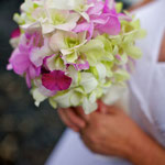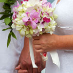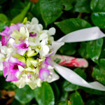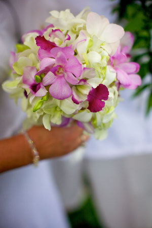 Faithfully yours with pink dedrobium orchids, white and light green dendrobium orchids, cattleya orchids with a magenta throat.